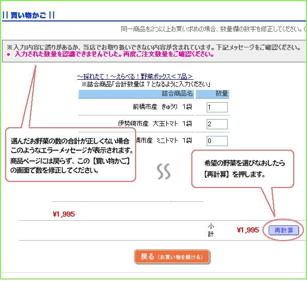 例は【〜採れたて!〜えらべる!野菜ボックス<7品>】の画面です。