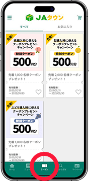 ログイン後クーポンメニューをタップ