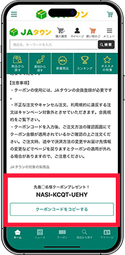 詳細画面下部でクーポンコードをコピーして注文時にご入力ください。