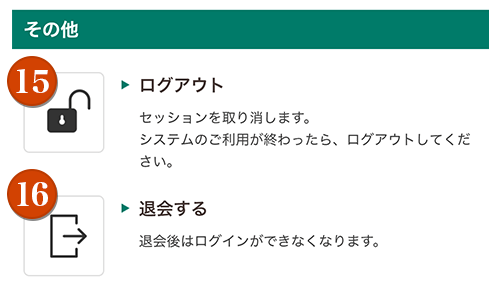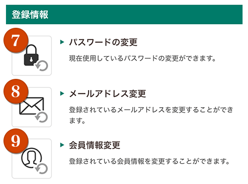 ご登録のお名前と、ログイン時の保有ポイントが上部に表示されます。