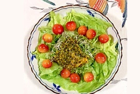 - えごま油とお砂糖を混ぜて、ドレッシングを作る。