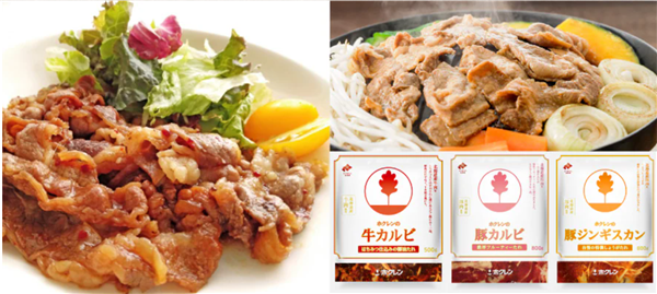 北海道産牛肉のまえばら肉使用。はちみつ入りの甘口たれに漬け込んだ、ご飯にあう一品。焼肉だけでなく、すき焼き風にも。