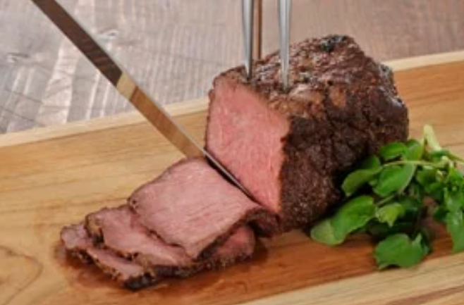 北海道産牛ロース肉を使用。塊のまま焼き上げて肉汁や旨みを閉じ込め、ジューシーに仕上げています。ほどよく柔らかいお肉は、口に入れると旨みが広がります。薄くスライスして添付のソースで食べても、厚切りにしてガーリックバターでさっと焼いても、美味しくお召し上がりいただけます。