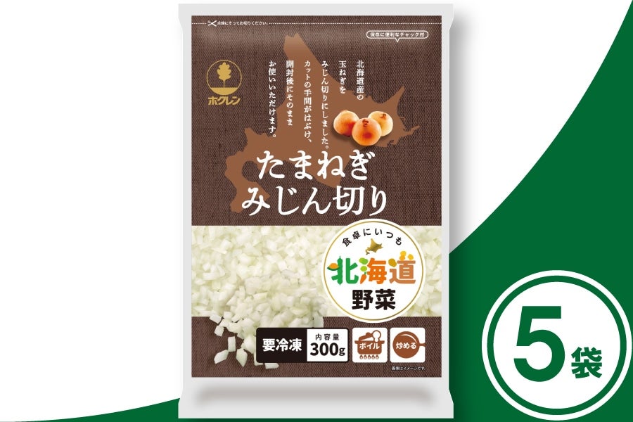 北海道産の玉ねぎをみじん切りにし、凍結しました。カットの手間がはぶけ、開封後にそのままお使いいただけます。