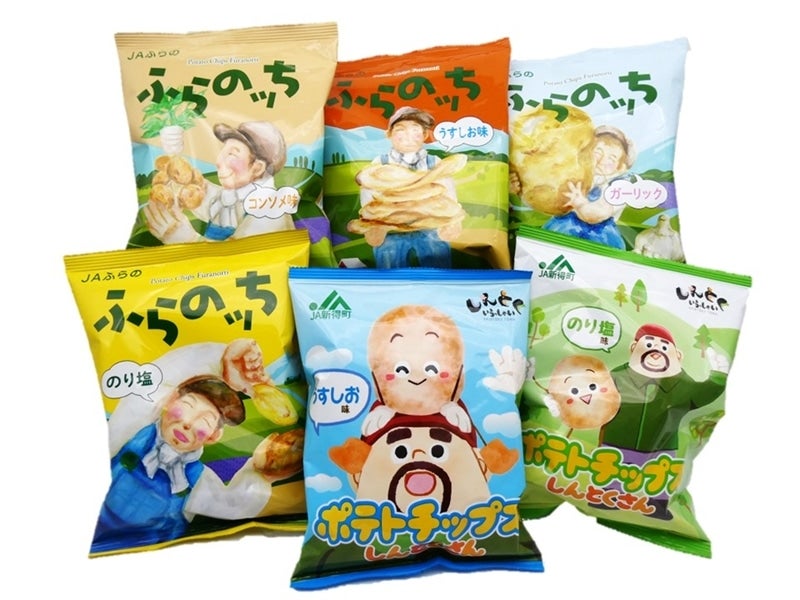 【規 格】:JAふらの ふらのッち(のり塩・コンソメ味・うすしお味)各60g×各1袋、 JAふらの ふらのッち ガーリック55g×1袋、 JA新得町 ポテトチップスしんとくさん(のり塩味・うすしお味)各60g×各1袋、 シークレット商品×2袋 【賞味期限】:製造から6ヶ月、シークレット商品:製造から4ヶ月