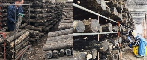 管理の難しさや重労働により年々希少となっている原木栽培を厚真町で唯一続けている(株)きたいでは、全て手作業で丹精込めて、「たのしいたけ」をつくっています。