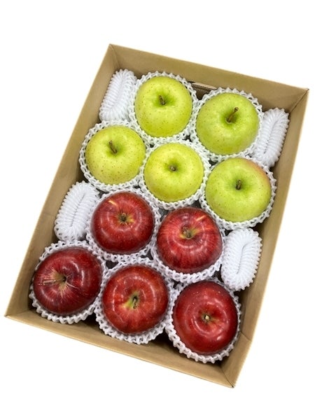 早生ふじと、甘味が強く香りの良い黄色いトキりんごの2種類の詰め合わせです。食べ比べで食味の違いをお楽しみください!