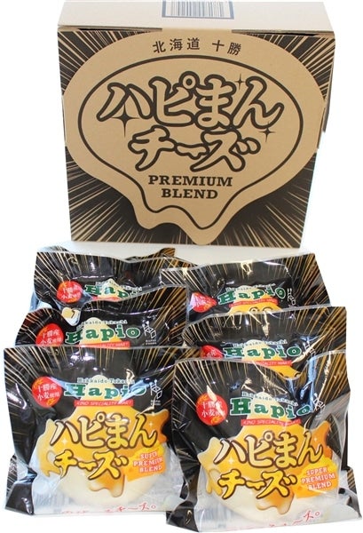 皮は100%十勝産小麦を使用し、この度、チーズは十勝産を含む北海道産のゴーダ、チェダー、モッツアレラの3種類のチーズをバランスよくブレンドし、これまでのチーズと変わらないコクや濃い旨味はそのままによりミルク感を増したSuper Premium Blendへとリニューアルいたしました。 ほんのり甘い皮はチーズの塩味との相性が抜群!たっぷり入った伸び〜るチーズも特徴の1つです。 この「ハピまん(チーズ)は2019年から100万個を売り上げる、地元十勝で大人気の商品です。