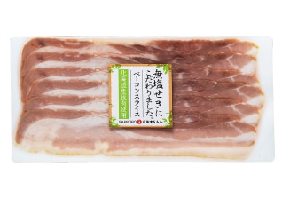 北海道産豚肉を使用し、塩、砂糖のみで仕上げたベーコンをスライスしてお届けします。