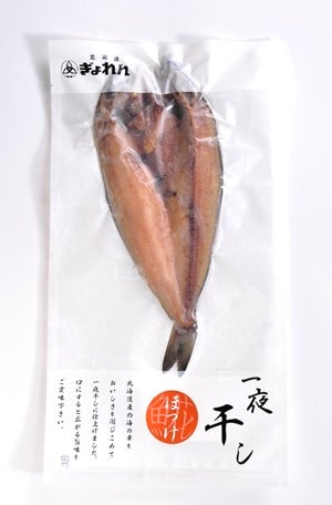 北海道の魚の代名詞「ほっけ」。旬の時期に水揚げされた脂のりの良いほっけを、背開きにし程よい塩加減になるように塩水に漬け、一夜干しにしました。
