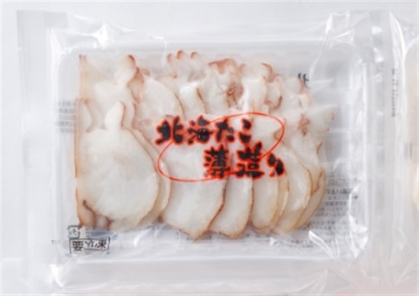 北海道産のたこを食感良く薄目に切ってあります。ぷりぷりの食感と甘みが特徴で、刺身はもちろん、北海道ではしゃぶしゃぶも人気です。