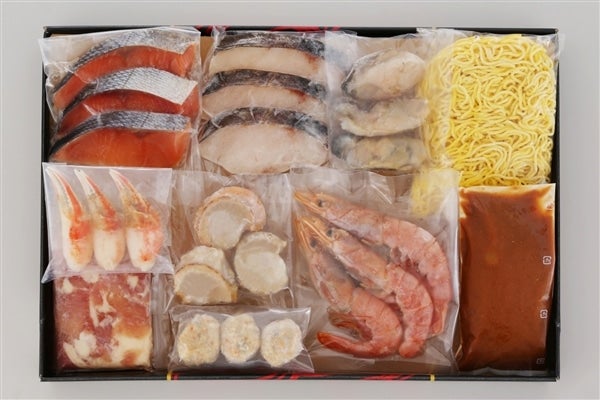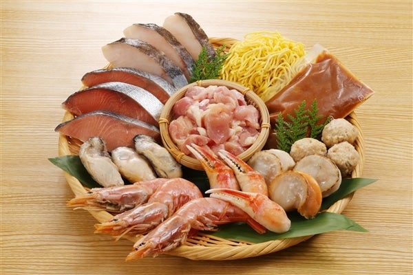 北海道産の海の幸を中心に、11種の具材のボリュームたっぷりの鍋具材セットです。