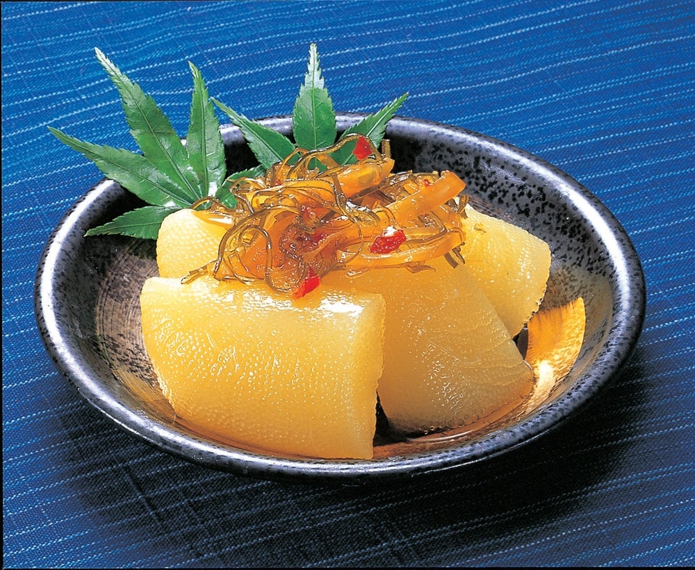 カツオ出汁を利かせた薄味仕立てです。パリパリ食感で上品な味わいの数の子をお楽しみください。