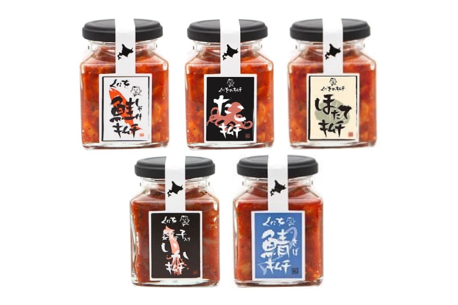 鮭キムチの元祖といえば、この「くにをの鮭キムチ」。海鮮キムチ5種をセットにしました。
