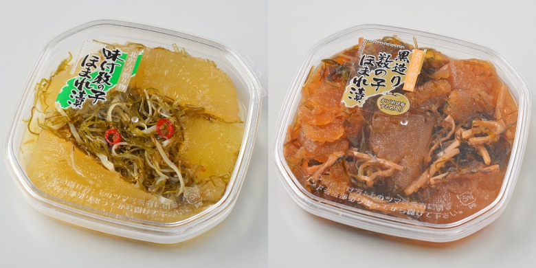 数の子を贅沢に使った、北海道を代表する高級珍味です。数の子の旨味を引き出すよう味付けを薄めにし、がごめ昆布やするめの旨みを加え淡口調味でじっくり漬込みました。