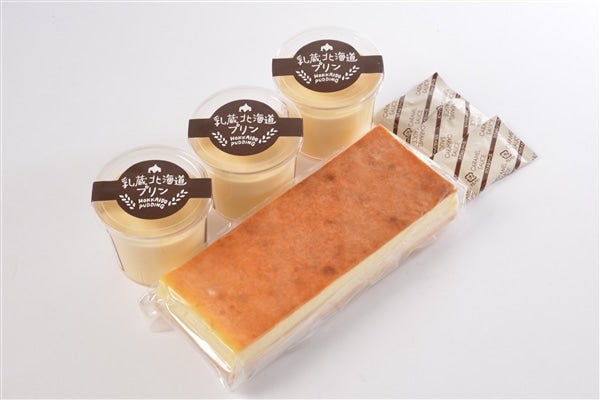 北海道産の牛乳を使用し、ふんわりなめらかな食感に仕上げたプリンと、濃厚なチーズケーキを詰合せました。チーズケーキは北海道産のチーズを使用し、しっとり焼き上げました。コクのある濃厚な味わいのチーズケーキと滑らかなとろけるプリンとの相性も良いセットです。北海道産ならではの乳製品のコクのあるスイーツをお楽しみください。