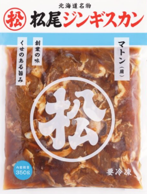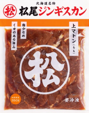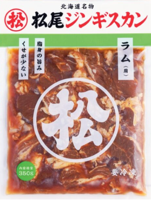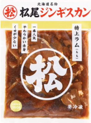 生後1年以上の成羊のもも肉を、松尾ジンギスカン秘伝のタレに漬け込んでいるため、味付マトン(肩)と比べて柔らかく、羊肉独特の香りが少なくさっぱりとした口当たりです。