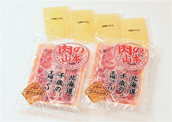ラム肉(仔羊肉)のロール肉を薄くスライスしたものを使用し、塩だれスープ付きですので自宅でお手軽に北海道の味を楽しめるセットです。