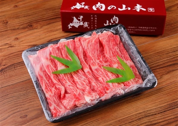 このちとせ和牛のモモ・肩スライスを、しゃぶしゃぶ・すきやきに適した厚さにスライスしました。ぜひご賞味ください。