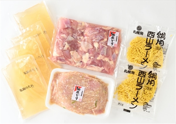 【規 格】 知床どりもも:400g、知床どりつみれ:300g、鍋つゆ:180g×4、鍋用ラーメン:80g×2 【賞味期限】 製造日より冷凍(-18℃以下)90日 【販 売 者】 株式会社肉の山本