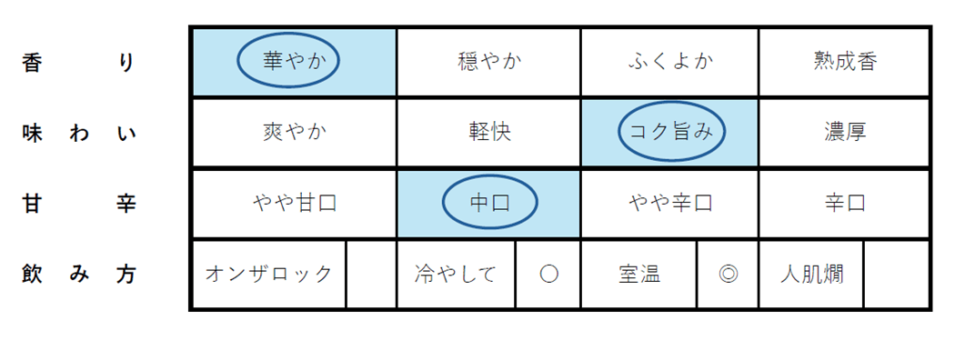 気品ある華やかな香り、そして口に含んだ瞬間から広がる深い旨みをお楽しみください。
