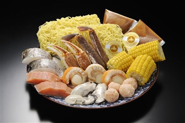 【規 格】カットコーン300g、ボイルホタテ135g、生鮭切身120g、生たら切身120g、生ずわい棒爪殻付100g、カキむき身90g、かに入り団子60g、ラーメン400g、バター5g×2、味噌たれ80g×2