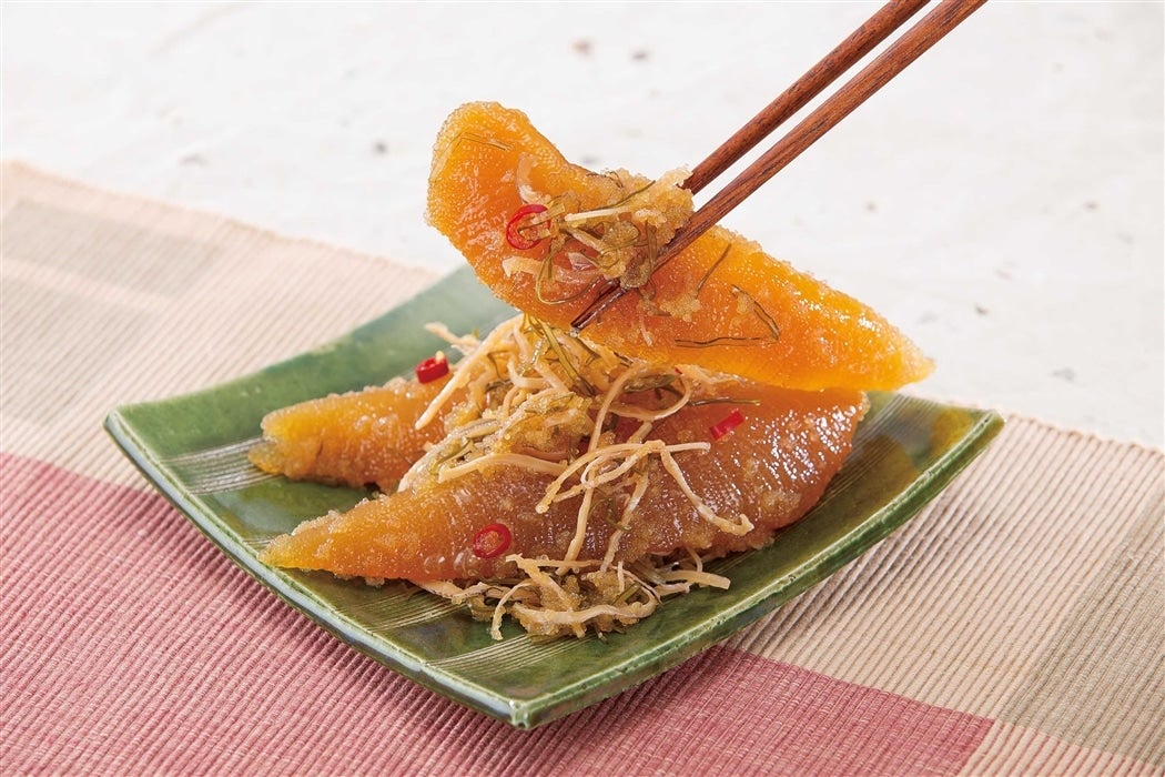 厳選されたスルメと真昆布にヨーロッパ産の数の子をふんだんに加え、昭和16年の創業より培った伝統の製法で造り上げた贅沢な松前漬です。