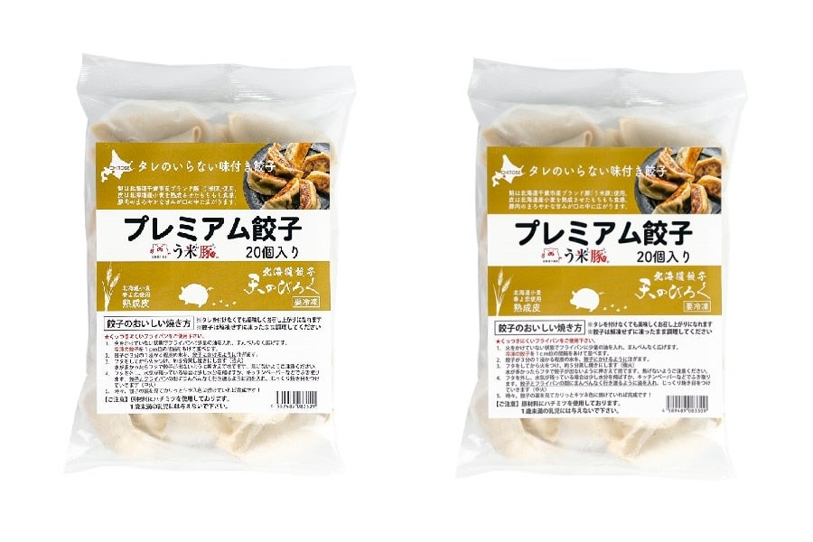 北海道千歳市産ブランド豚「う米豚」使用。タレのいらない味付き餃子