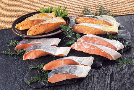 知床半島沖で漁獲された鮭を5種の味付けで仕上げました。