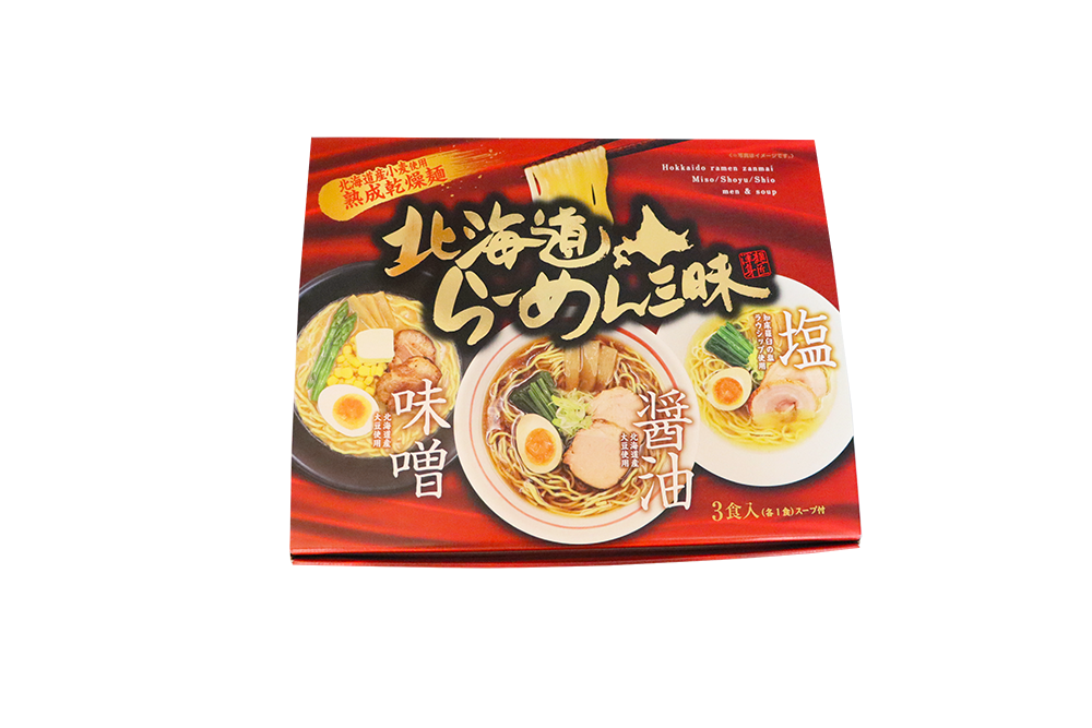 北海道素材・北海道産の原料にこだわった醤油・味噌・塩の3食ラーメンセットです。