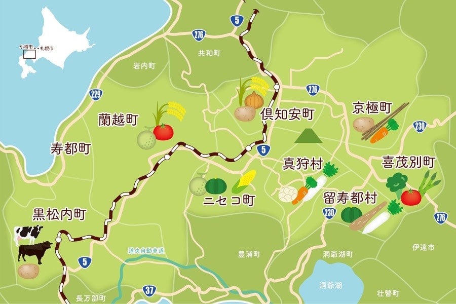 地域では、稲作、畑作、野菜、酪農畜産など幅広く生産されており、春にはアスパラガスから始まり、夏はメロン、スイートコーン、秋には米、馬鈴薯、ゆり根、南瓜などが収穫されます。