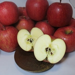 甘み・酸味・果汁の多さにしっかりとした食感を兼ね備えたサンふじは、赤りんごの代表格。