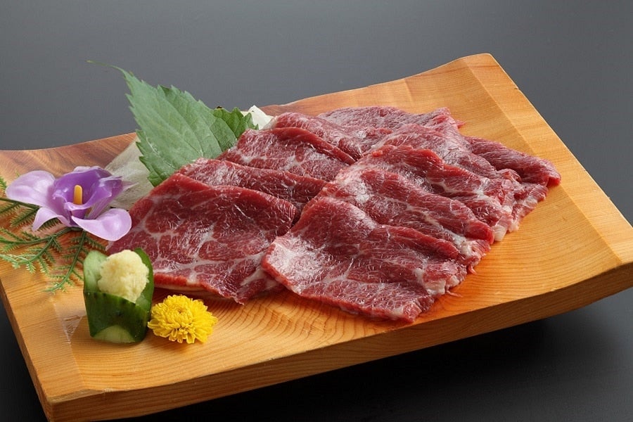 【原材料名】馬さしのたれ : しょうゆ(小麦を含む)、砂糖、生姜、発酵調味料、青のり、唐辛子、調味料(アミノ酸等)