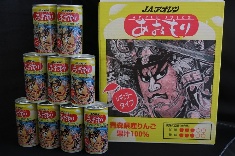 青森県産りんご果汁100%のジュースです。缶のデザインは、「ねぶた」がモチーフの人気商品。
