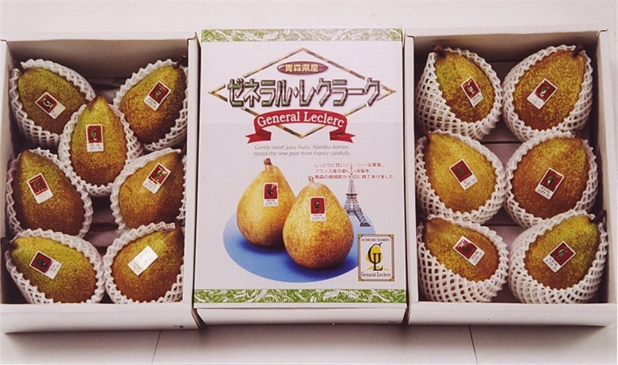 ゼネラル・レクラークはわが国に導入されている洋梨約150種類の中の一つで、青森県南部町青年グループが昭和63年に日本で初めて導入した品種です。