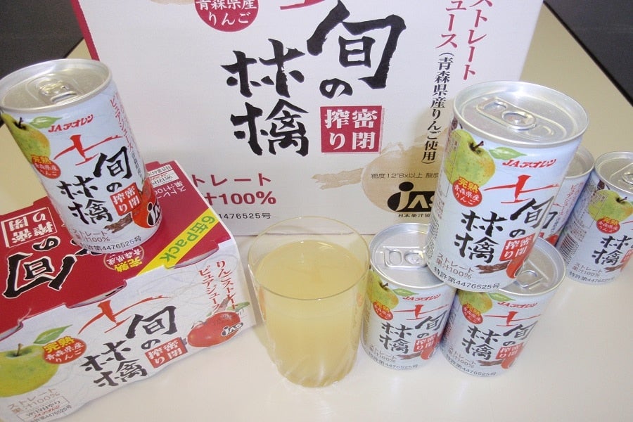 厳選された青森県産の「王林」と「ふじ」をブレンドした、JAアオレンこだわりの製法「密閉搾り」による、ストレート果汁100%の特定JAS認定「ストレートピュアジュース」です。
