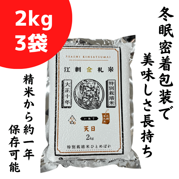 [お歳暮]特別栽培米 江刺金札米 ひとめぼれ天日 パック米(2kg×3袋)精米から約1年保存可能