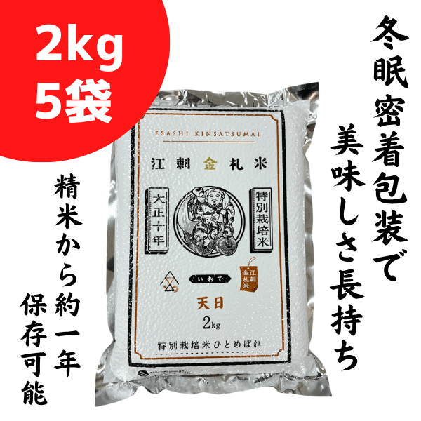 特別栽培米 江刺金札米 ひとめぼれ天日 パック米(2kg×5袋)精米から約1年保存可能