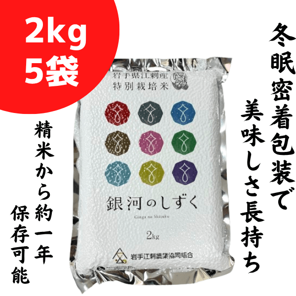 特別栽培米 岩手江刺産 銀河のしずく パック米(2kg×5袋)精米から約1年保存可能