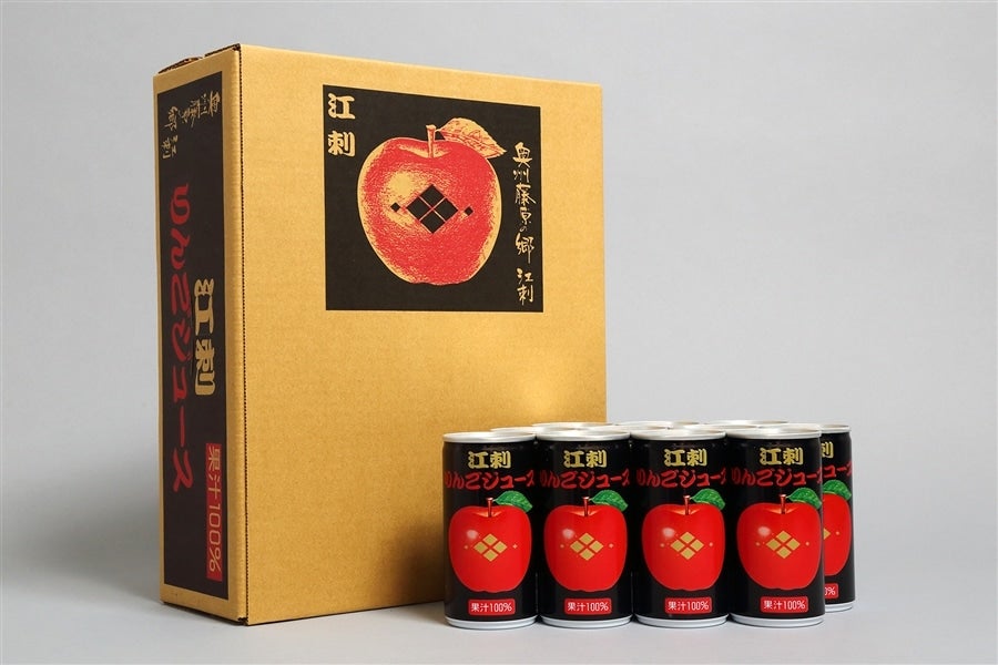 その撮影が江刺を主に行われたことを記念し企画・販売されました。真っ赤なりんごに『秀衡塗り』をモチーフにした金色の蒔絵模様、それを引き立てる落ち着いた黒い缶が目印!