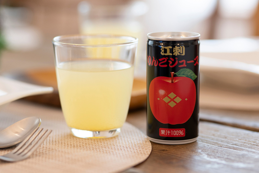 甘みと酸味のバランスが絶妙な『ジョナゴールド』と太陽の光をいっぱいに浴びた『サンふじ』をミックスしたストレート果汁はスッキリとした爽やかな酸味とまろやかな甘さが特徴!