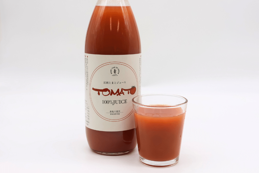 江刺トマトジュースは、従来の「加工用トマト」ではなく「生食用トマト」を使用したトマトジュースです。