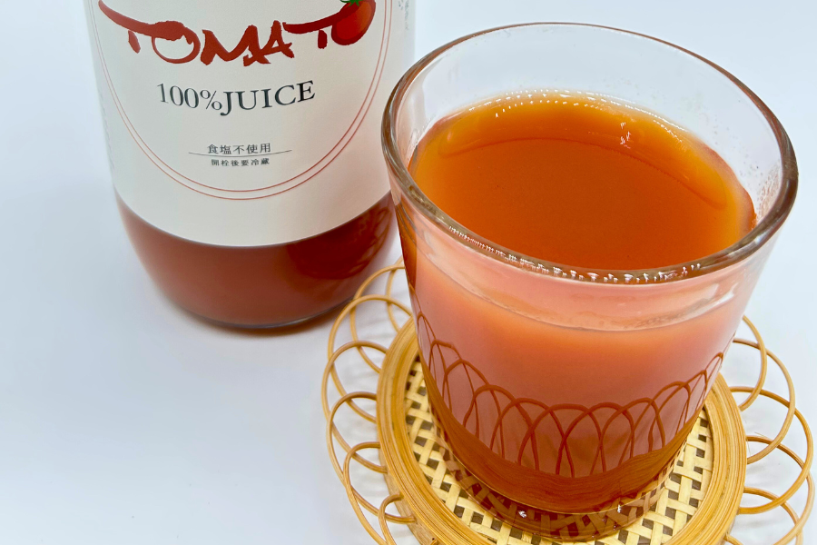 収穫したばかりの江刺産トマトをぎゅっと絞った、無塩ストレートジュース。トマト本来の味が楽しめます♪