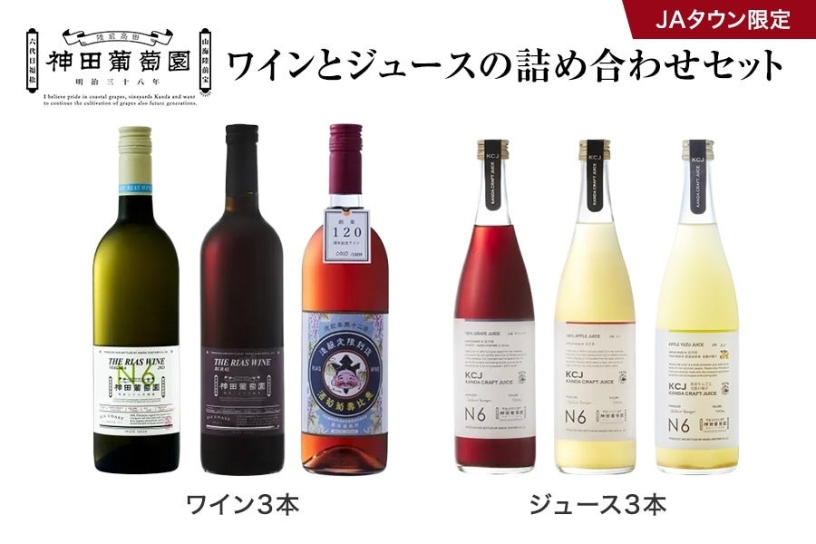 【JAタウン限定!】神田葡萄園おすすめのワイン&ジュースの詰め合わせ6本セットです。
