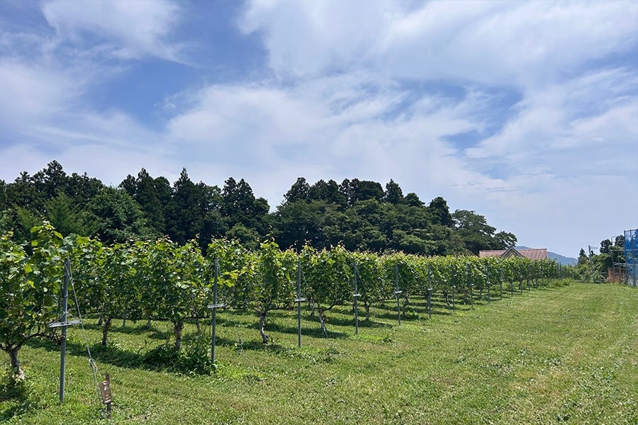 リースリングリオンは甲州の交配種を親に持つ品種で、岩手の土着品種とも言える白ワイン用品種です。甲州とリースリングリオンのブレンドによる日本らしさが現れる2025VTの我々の幕開けを飾るワインです。