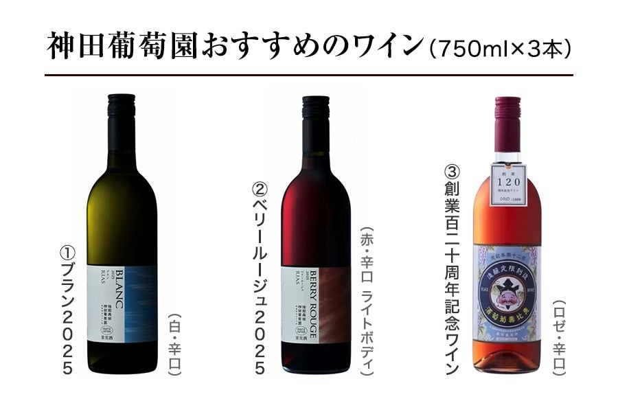【JAタウン限定!】神田葡萄園おすすめのワイン3本セットです。