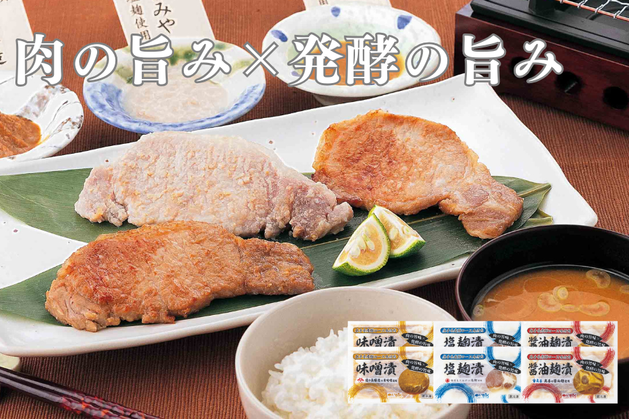 味噌漬け、塩麹漬け、醤油麹漬け(ロース肉 約70g・タレ 約30g) 3種×2P