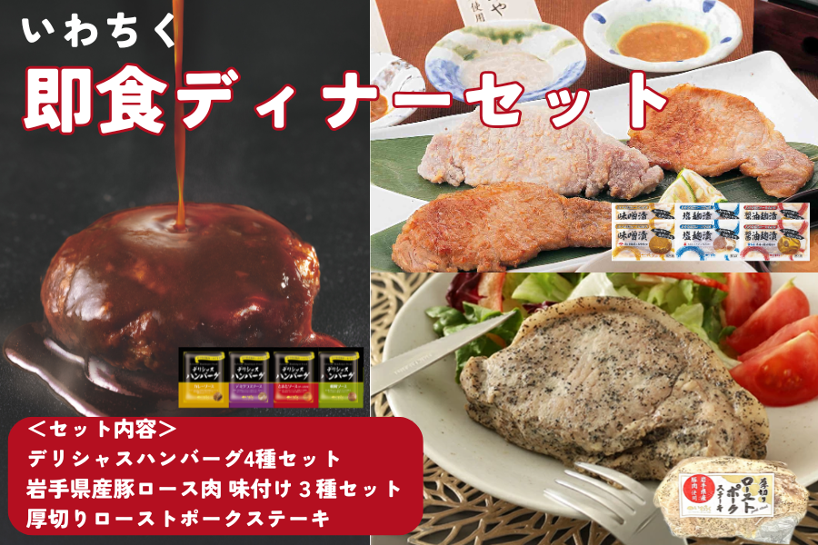 【限定】いわちく即食ディナーセット(ハンバーグ、豚ロース、ローストポーク)