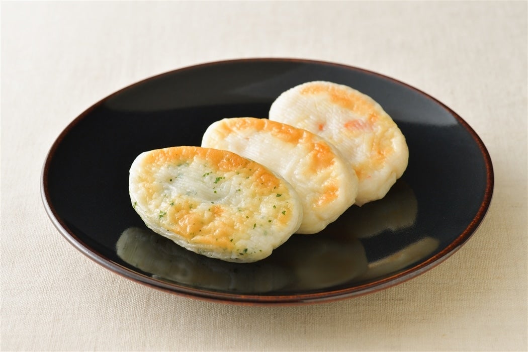 おいしさそのままに、ミニサイズの笹かまぼこです。粗みじんのむきえびや鮮度の高い生のしそ、口どけの良いスモークチーズを使用しています。