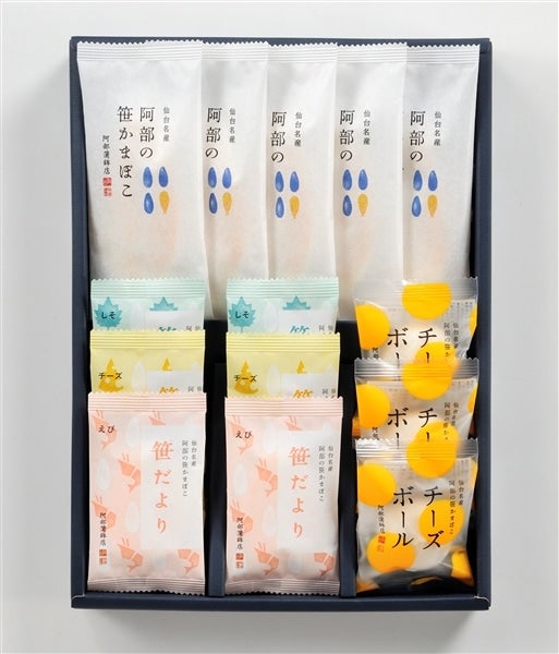 最上級グレードのすり身を遠赤外線の炉でじっくり焼き上げた「阿部の笹かまぼこ」、3種の味が楽しめる「笹だより」、ふっくらとろーり「チーズボール」。おいしさ豊かな詰合せです。